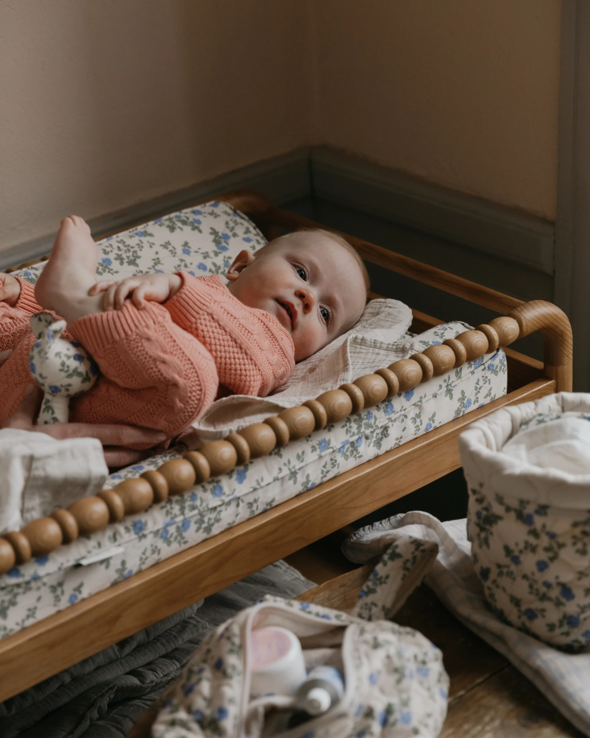 Changing cushion with a comfortable shape and high edges that provide good support for the baby. The cushion is made of foam and the cover is made of 100% Cotton Satin with BIONIC-FINISH® ECO.